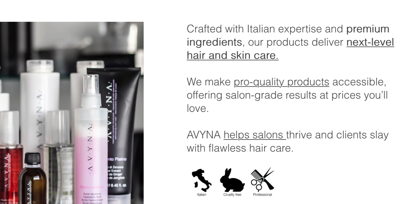 Avyna gives the salon owners the opportunity to grow their business by having a product they can actually sell and to the clients the opportunity to take care of their hair with professional products.